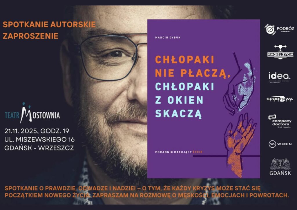 Zapraszamy na rozmowę o męskości, emocjach i powrotach z autorem książki "Chłopaki nie płaczą, chłopaki z okien skaczą" Marcinem Dybukiem.