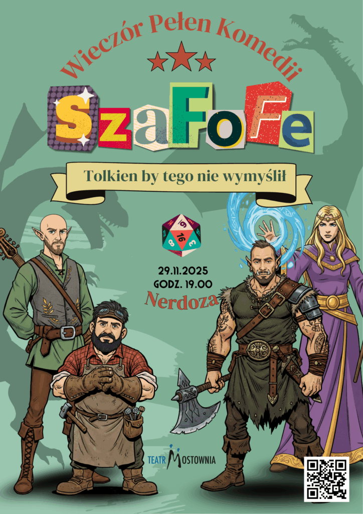 SzaFoFe zaprasza na WIECZÓR PEŁEN KOMEDII! Premiera najnowszego formatu - “Nerdoza”. Wspólnie przeżyjemy niesamowitą przygodę w świecie fantasy.