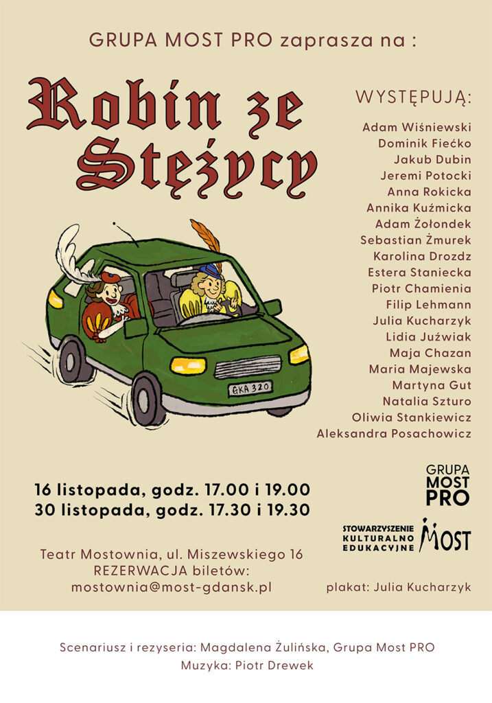 MOST-PRO zaprasza na spektakl "Robin ze Stężycy". Masz chęć pomagania innym? Chcesz poczuć moc filantropii? Nic prostszego! Wystarczy tylko chcieć - i Ty możesz być Robin Hoodem ze Stężycy
