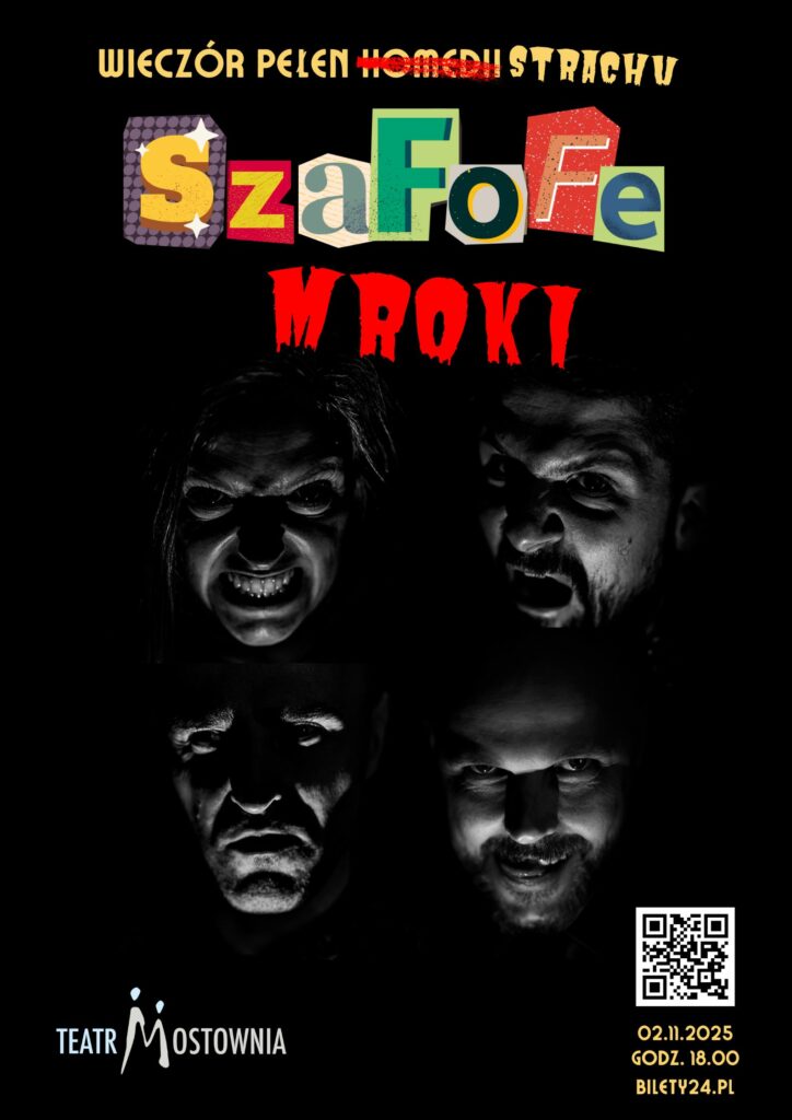 SzaFoFe zaprasza na wyjątkowy wieczór pełen… strachu. „Mroki” to autorski format, w którym światło i dźwięk pozwolą widzom zanurzyć się wraz z improwizatorami w świat grozy i mrocznych historii.