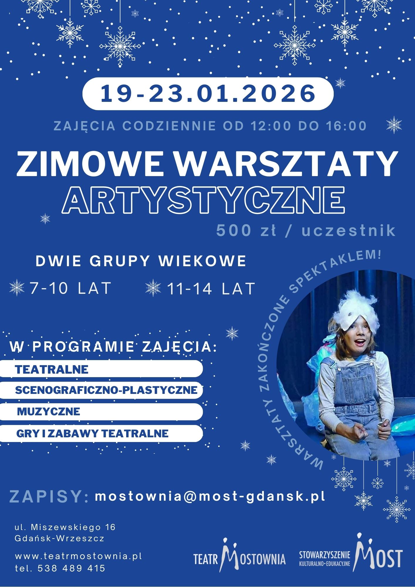 Otwieramy zapisy na zimowe warsztaty dla grup wiekowych 7-10 i 11-14 lat. Stwórzmy razem spektakl teatralny w 5 dni!